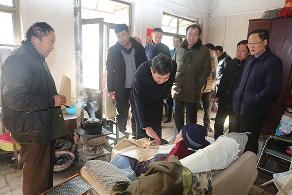 为深入贯彻落实党的十九大关于深入开展脱贫攻坚的精神要求以及习近平总书记关于新时期扶贫工作的指示精神,落实省、市扶贫工作的具体部署,加强集团公司与对口帮扶村的沟通交流,切实为当地贫困群众办好事、办实事,1月20日,正值“大寒”节气,集团公司开展了以“确保群众温暖过冬”为主旨的扶贫慰问活动。集团公司党委书记、董事长、总经理孙光文等领导一行来到对口帮扶的柳埠街道裁缝峪村,给贫困户送去了集团公司的关心和温暖。南山管委会段振峰副主任、柳埠街道办事处党工委徐建利书记及裁缝峪村书记、主任等领导陪同参加了此次慰问活动。