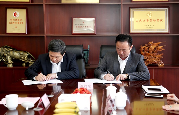 我公司党委书记、董事长、总经理孙光文与山东三发集团董事长张家发共同签署《战略合作协议》,同时就下一步合作进行了广泛深入的交流。我公司常务副总经理、总经济师胡云双、副总经理栾兆杰、办公室主任杨兴建、直属项目公司经理徐怀忠及山东三发集团常务副总肖玲、工程副总徐德顺、成本副总高华、行政副总李世宝等双方领导出席签约仪式。
