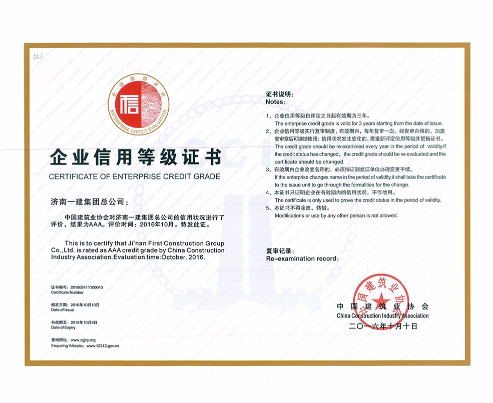 全国建筑业AAA级信用企业